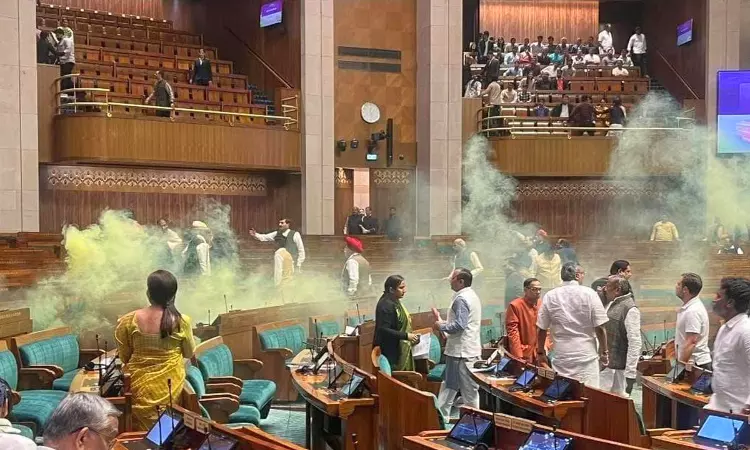 सोशल मीडिया पर सामने आई तस्वीरों और वीडियो में दोनों को कनस्तर पकड़े हुए देखा गया था, जिससे पीली गैस निकल रही थी। वे नारेबाजी भी कर रहे थे। हालांकि, उन पर कुछ सांसदों ने कब्जा कर लिया था।